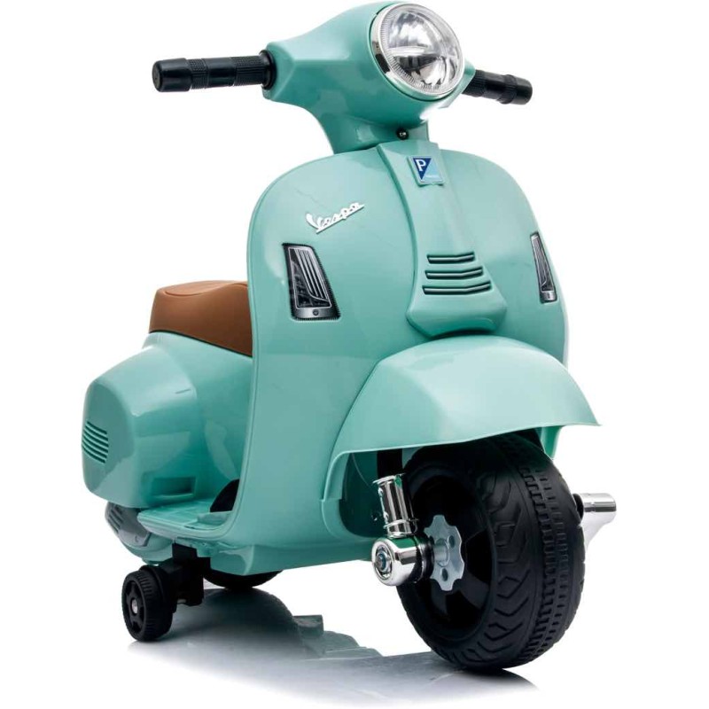 La Mini Moto de Batería Vespa Verde agua tiene licencia oficial de Vespa. Su marca es de la colección exclusiva de Motoor Kids. ¿Puede haber una Moto para niños que se parezca tanto a la auténtica?¡Les encantará!. Que enciendan las luces, toquen el claxon y conducir, ¡siempre respetando el límite de velocidad!. Además incluye una batería recargable de 6V, motor de 30W, 4AH, batería y cargador incluido. Puede llegar a alcanzar una velocidad máxima de 2,5 km/h. La Mini Moto de Batería Vespa Verde mide aproximadamente 66,5cm x 38cm x 52cm ¡Run run!.