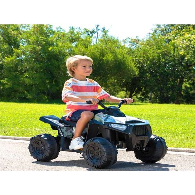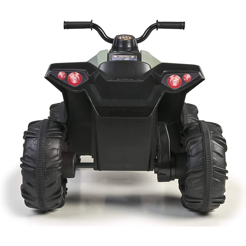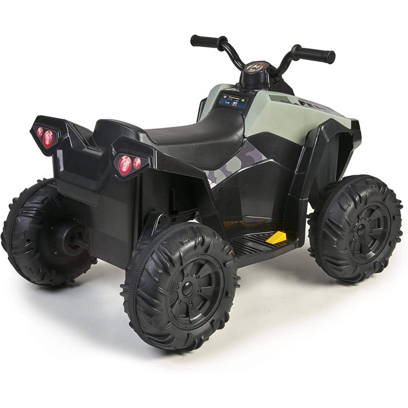 Quad Boxer 12V tiene marcha hacia adelante y atrás y freno en el pie Sus ruedas robustas ayudan a mejorar la estabilidad y alcanza hasta los 5 km/h