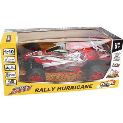 Disfruta de la velocidad conduciendo este coche radio control Rally a escala 1:10. Este modelo color rojo está diseñado para atravesar todos los terrenos que imaginas gracias a su suspensión y sus ruedas de goma. Con su control remoto de 2.4 GHz podrás controlarlo con hasta 30 metros de distancia. Alcanza una velocidad máxima de 12 km/h, ¡es una bala! Dispone de multibanda que permite hasta 10 corredores a la vez. Juguetoon. Ref.: 23-101. Edad recomendada: +3 años.