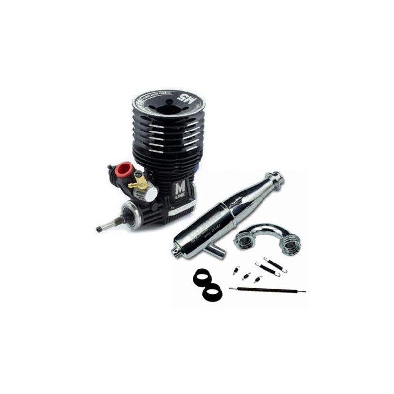 Motor de 5 transfers, carrera larga y cigüeñal Tuned. Este motor está dirigido para todos aquellos modelistas que quieren un motor potente pero que al mismo tiempo disponga de potencia tanto a bajas revoluciones como a altas revoluciones. Destacar la culata sobredimensionada que permite una refrigeración perfecta hasta en los días más calorosos evitando pérdidas de potencia por sobrecalentamiento.